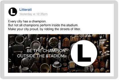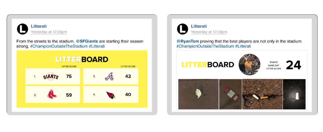Litterati encourages sports fans to be champions in their city by leveraging game day as an event to collect litter.